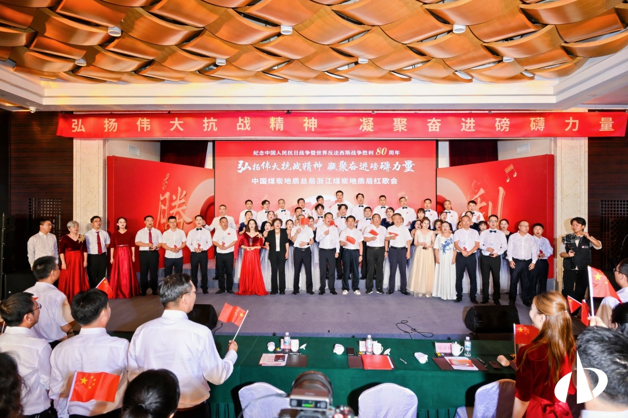 在中国人民抗日战争暨世界反法西斯战争胜利80周年之际,为大力弘扬伟大抗战精神,9月2日,中煤浙江地质集团有限公司(浙江煤炭地质局)党委在杭州华辰银座酒店举办“弘扬伟大抗战精神 凝聚奋进磅礴力量”主题红歌会,唱响红色旋律,共同铭记历史、缅怀先烈、珍爱和平、开创未来。中煤浙江(浙江局)党委副书记、总经理(副局长)李非致开幕词,局领导张威森、陈必权、邵亚平、陈昱、张雄邦出席活动。